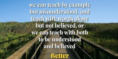 We can teach by example but misunderstood, and teach with words alone but not believed, or we can teach with both to be understood and believed